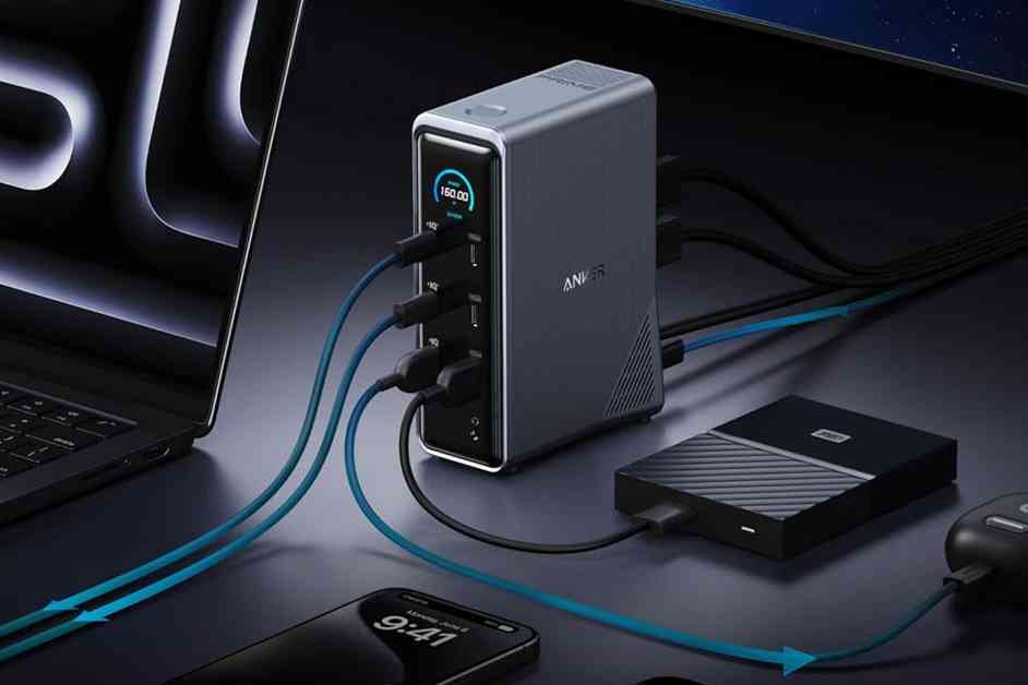 This Anker docking station is a game-changer when it comes to keeping all your devices in one place. No more clutter on your desk! With this hub, you can connect to multiple displays, transfer data at lightning speed, and charge all your devices from one convenient spot. The hub features a variety of ports to meet all your needs. On the front, there are four USB-C ports, with two offering up to 100W output and the others providing speedy transfer rates of up to 10Gb/s. You’ll also find two USB-A ports, one for charging at 12W and the other for data transfer. With all charging ports in use, you get a total output of 160W.